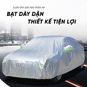 Bạt phủ xe ô tô 7 chỗ 3 lớp tráng nhôm cách nhiệt, chống nóng, chống thấm, chống bụi bẩn - Bạt phủ xe có mặt ngoài là chất liệu vải PEVA tráng nhôm phản