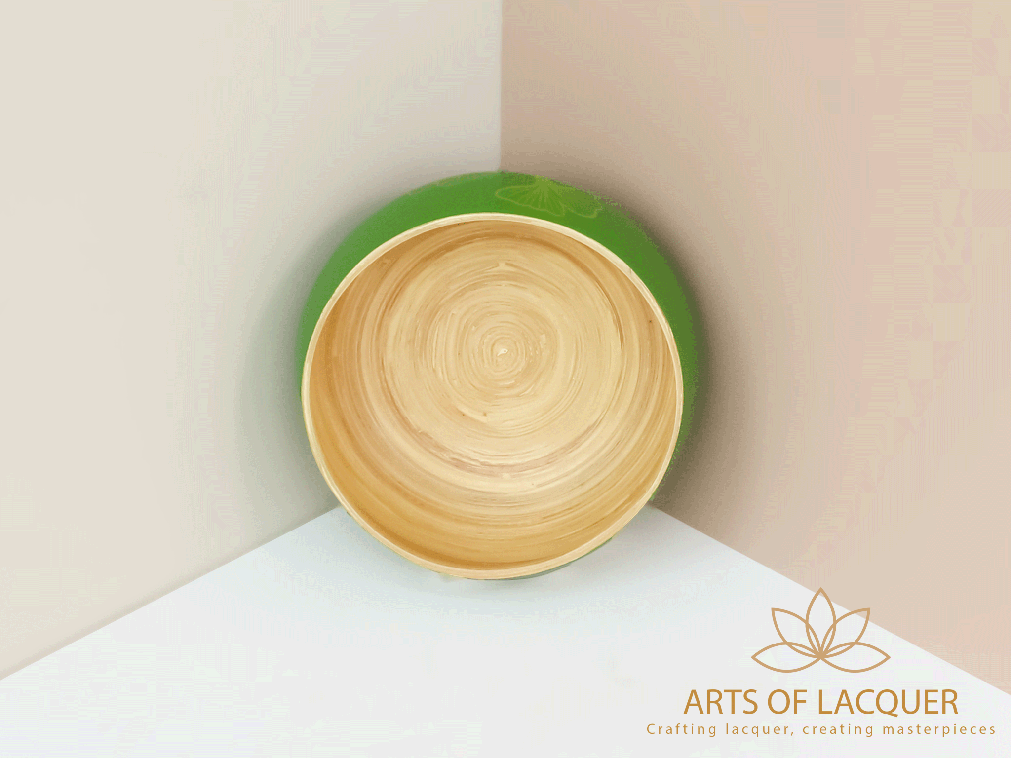 ✨Bát Sơn Mài Xanh Lá Cây Họa Tiết Lá Bạch Quả