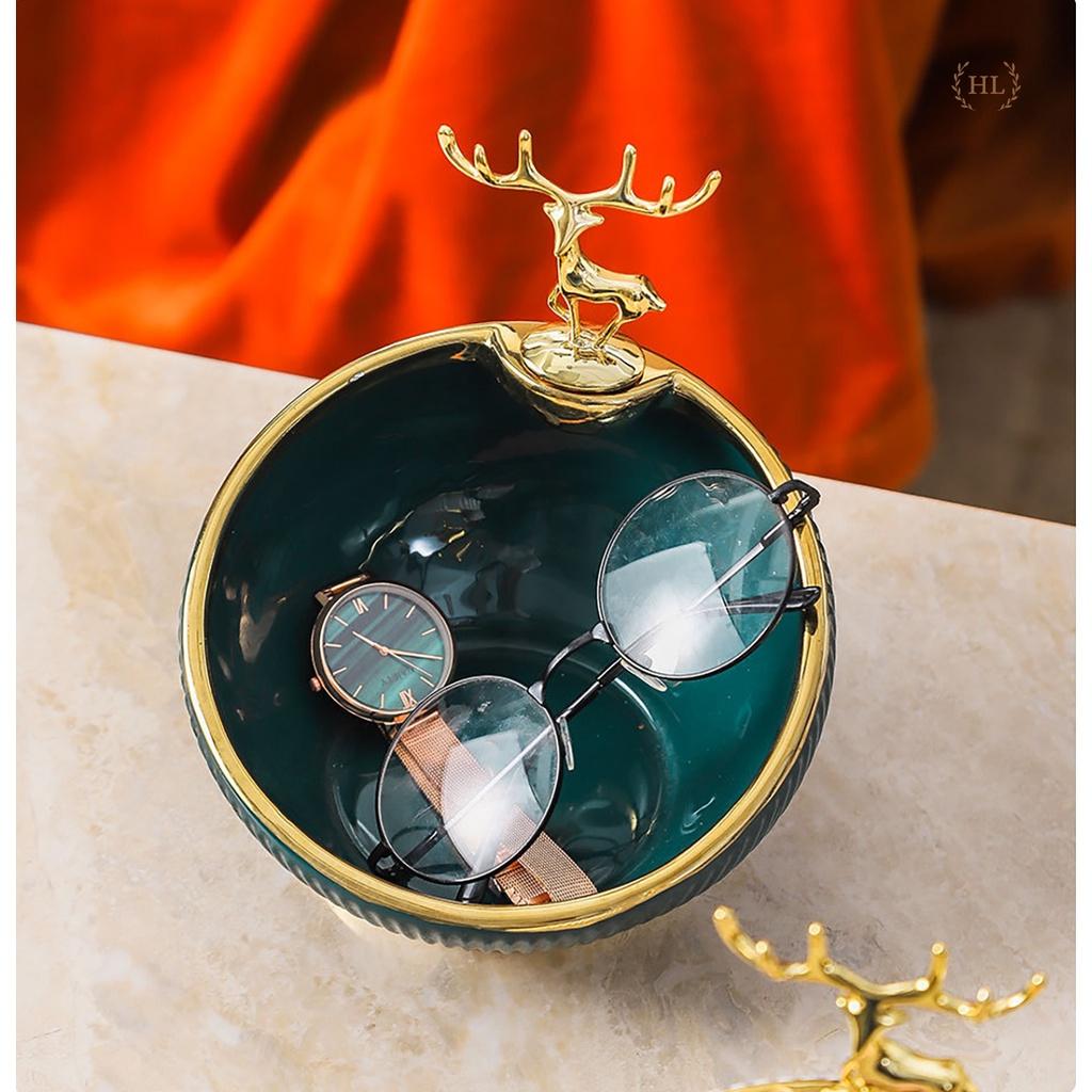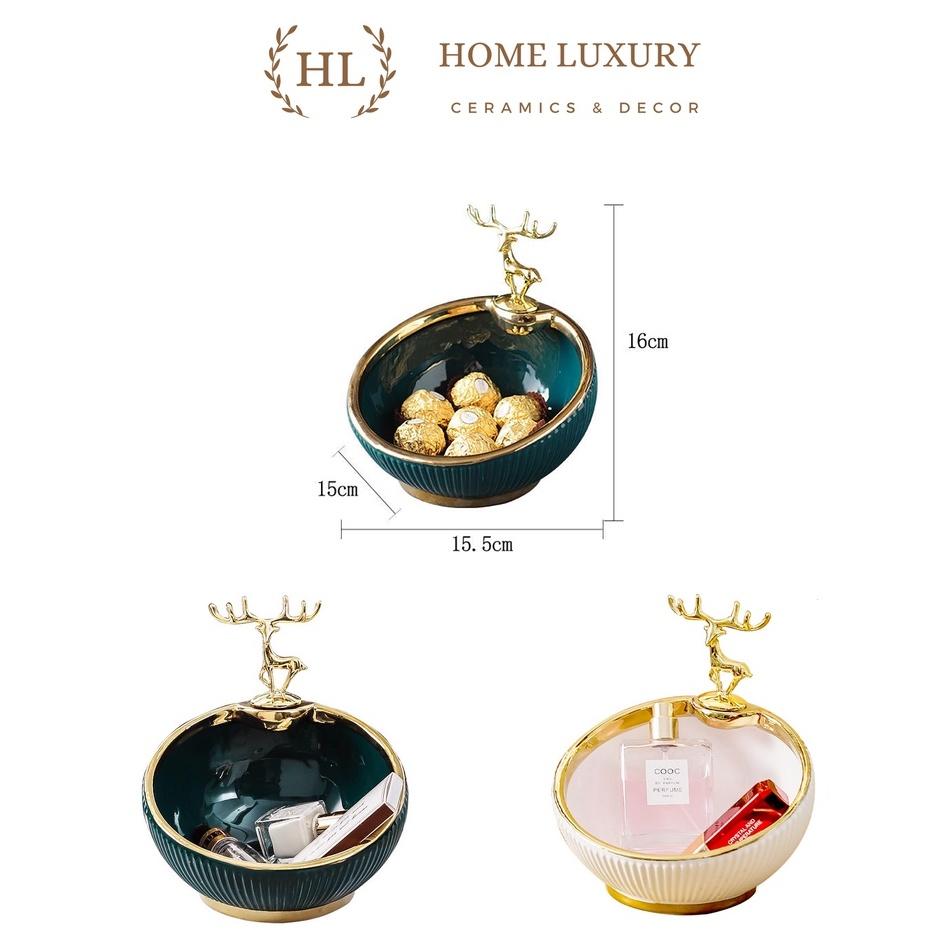 ✨Bát Sứ Đựng Kẹo - Chìa Khóa - Phụ Kiện Decor 2022 | Âu Sứ Decor Kẻ Vàng Kim Vân Nổi Hình Hươu Mạ Vàng ( Hàng Có Sẵn )