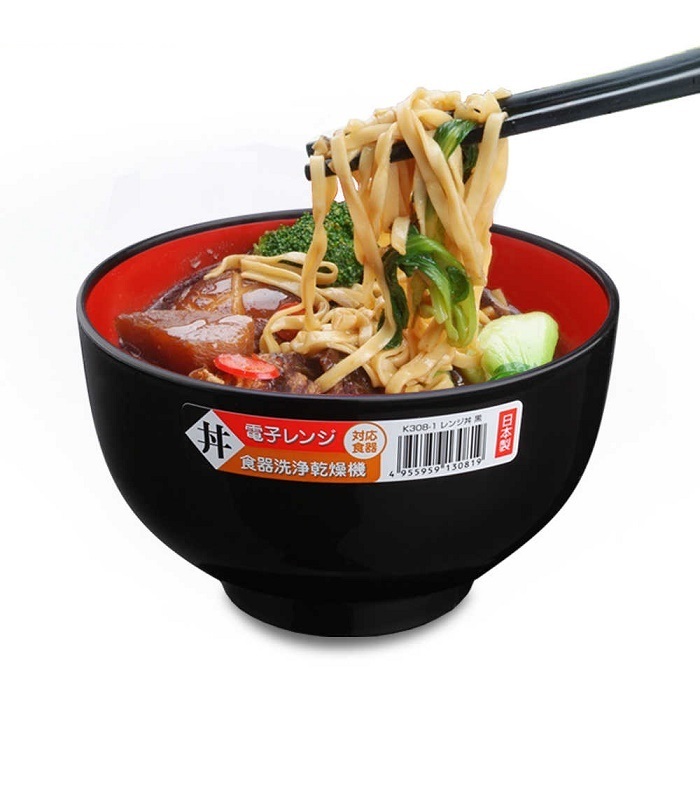 Bát tròn miệng rộng 500ml (Ø14.5×5.5cm) ■ Xuất xứ: Nhật Bản | MADE IN JAPAN ■ Kích thước:Ø145 x 55 Hmm ■ Màu sắc: Đen ~ lòng đỏ ■ Chất liệu: - Nhựa Polyester (PET) bề mặt phủ