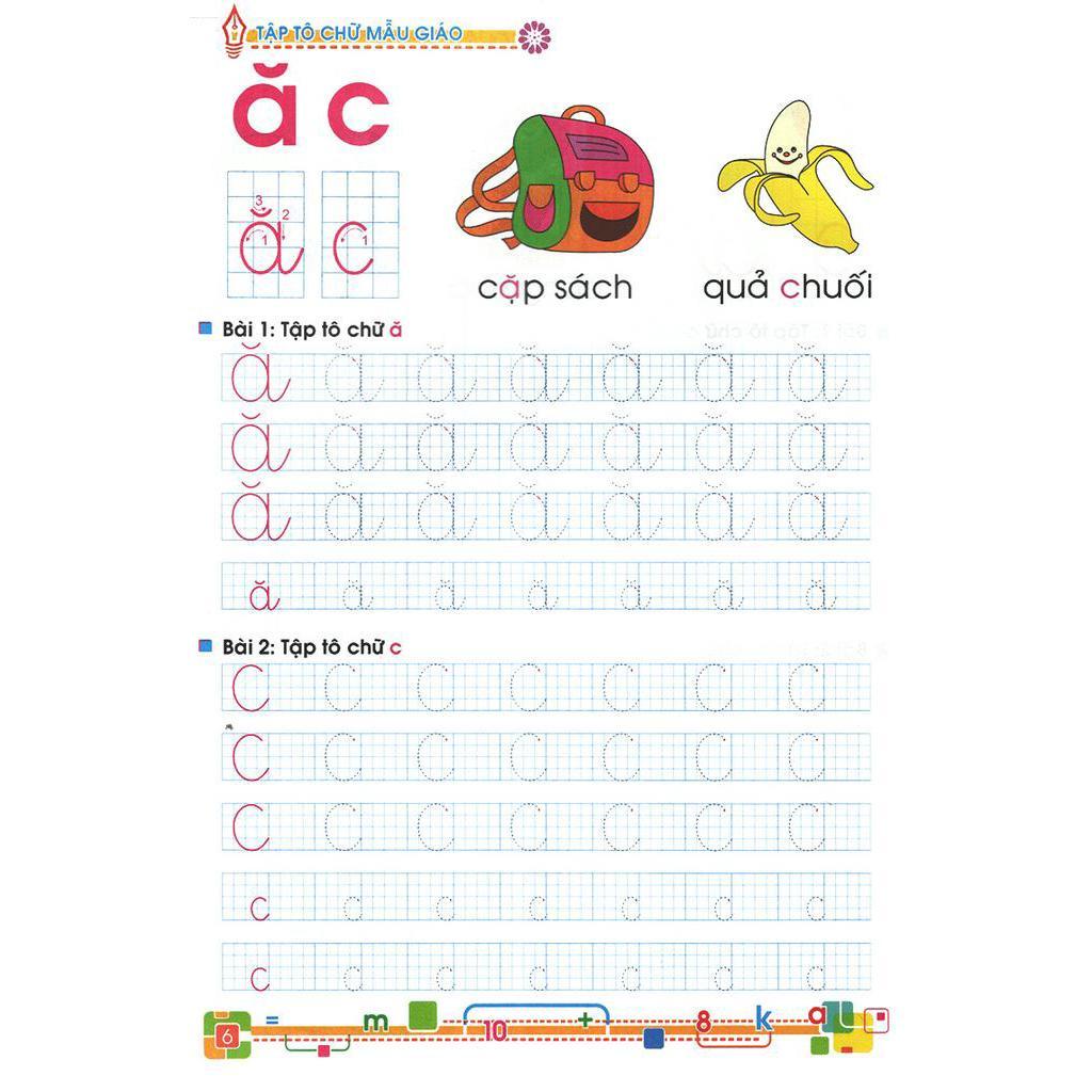 - Chỉn chu và chi tiết ngay từ những bước đầu tiên. - Hướng dẫn tư thế ngồi viết, Cách cầm bút đúng cách. - Tập tô tập viết: Nét cơ bản, Chữ cái, chữ