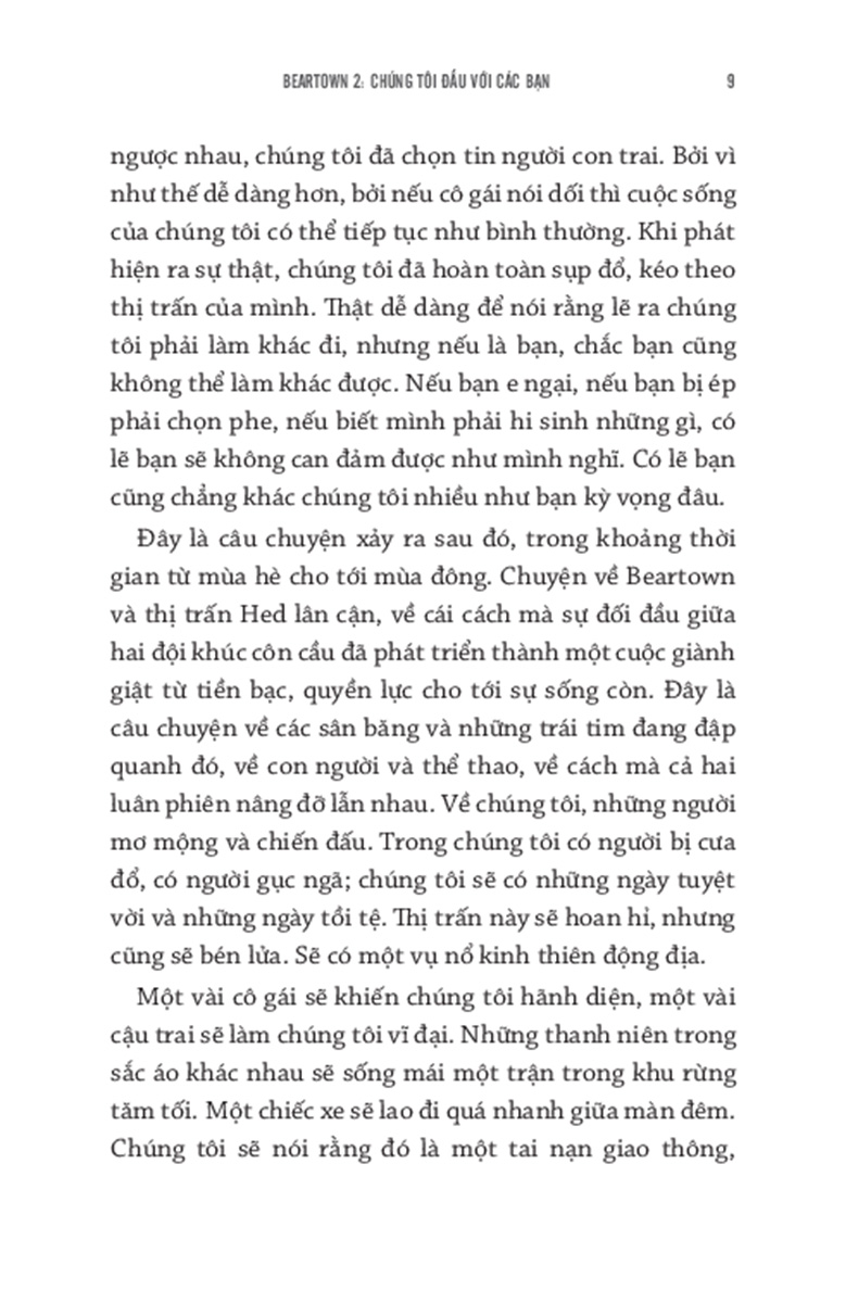 Trận đấu lớn sắp đến gần, những trò chơi khăm và những sự-cố-không-hề-là-sự-cố giữa hai cộng đồng ngày càng xuất hiện nhiều, sự căm ghét của họ ngày càng tăng. Khi bàn thắng cuối cùng được ghi, một cư dân của Beartown sẽ chết, người dân của hai thị trấn sẽ buộc phải tự hỏi liệu sau mọi chuyện, trò chơi họ yêu thích có thể trở lại là một thứ đơn giản chỉ cần một sân băng, hai cái lưới và hai đội chơi. Chỉ là chúng tôi đấu với các bạn.