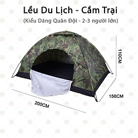 ✨[Bền Đẹp] Lều Trại Du Lịch Cắm Trại 2-3 Người - Vải Dù Phong Cách Quân Đội - KDHS-3732-LeuQD (Vải Rằn Ri)