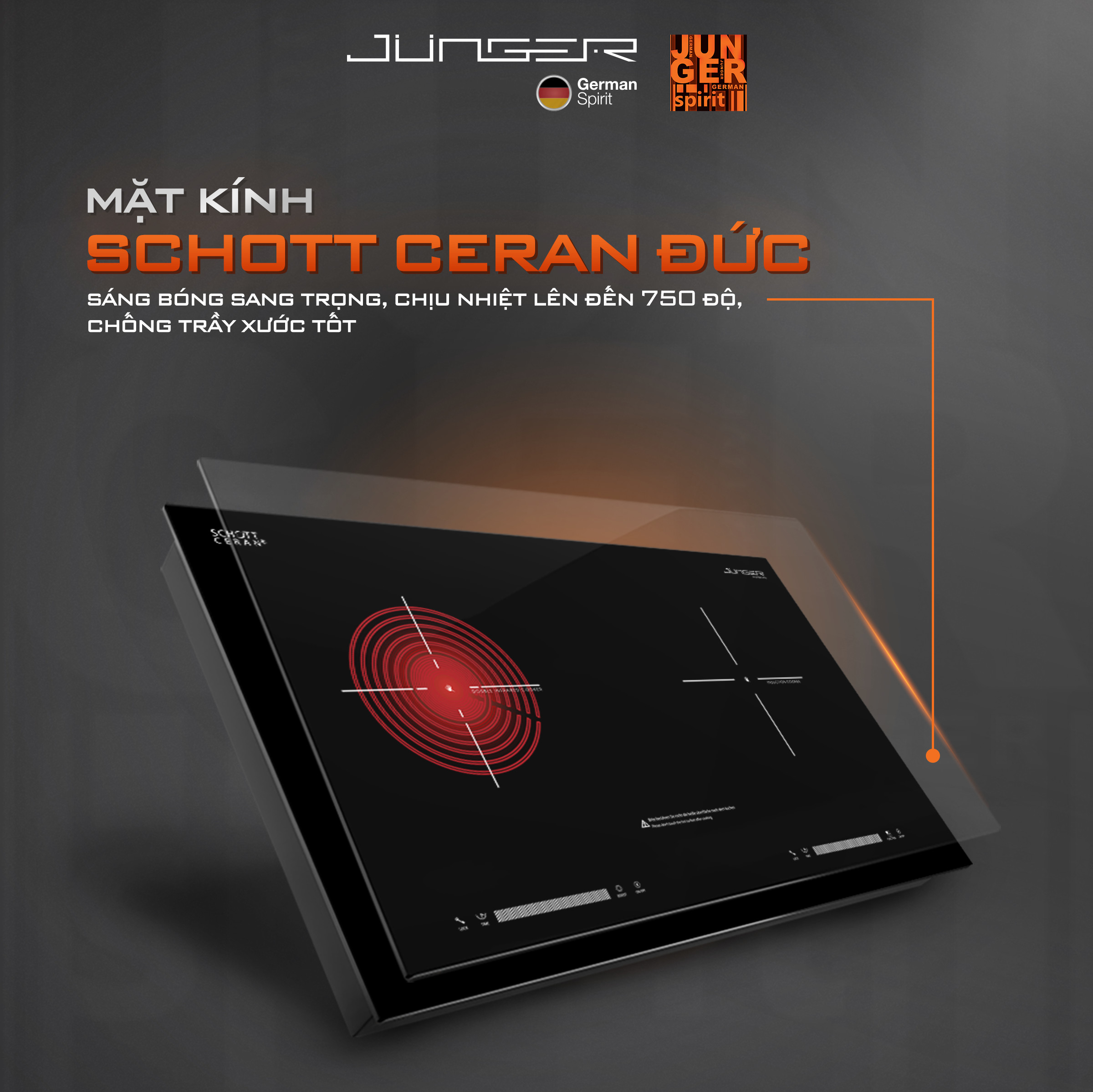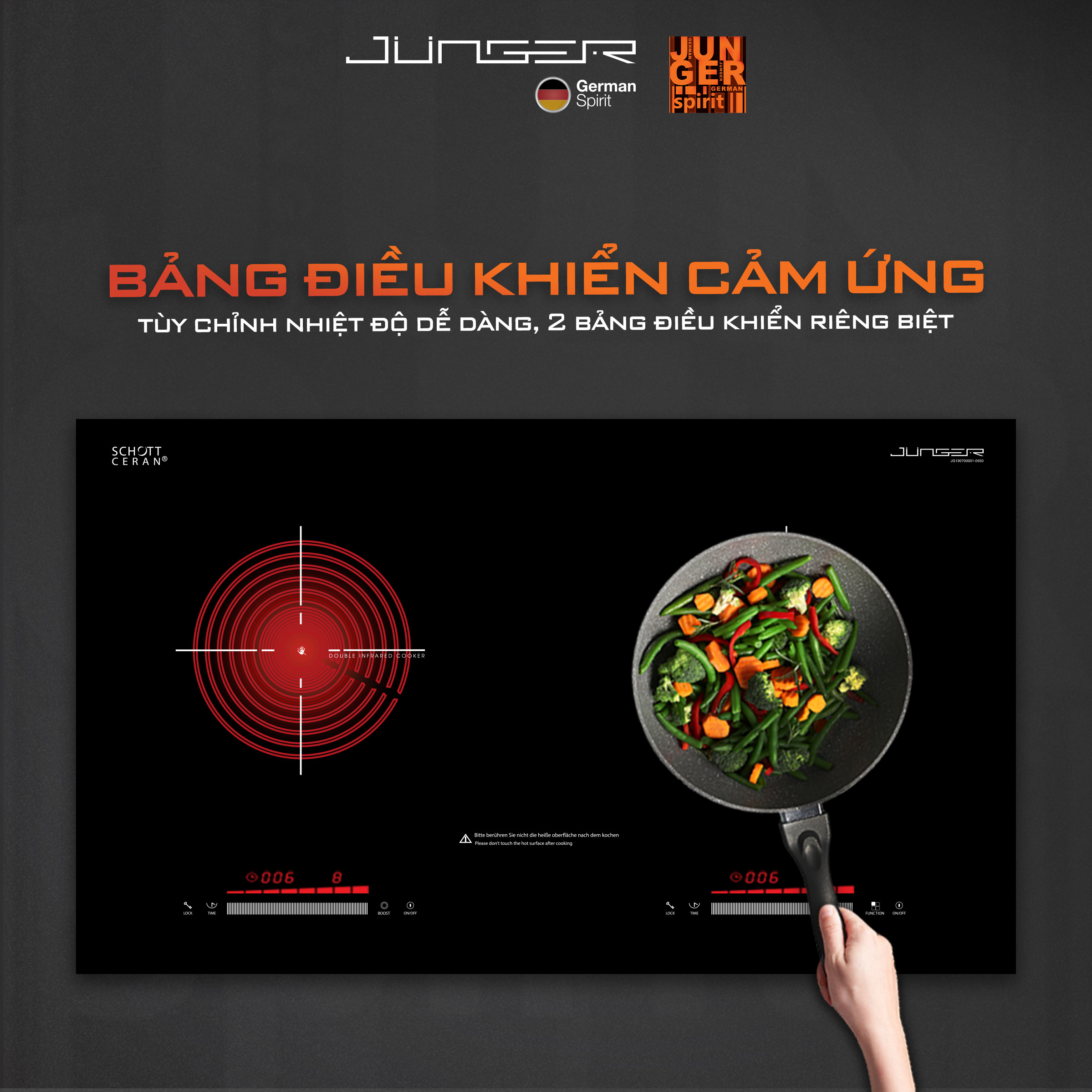 Bếp điện từ cao cấp Junger công nghệ của Đức được lắp ráp tại Thái Lan và nhập khẩu nguyên chiếc về Việt Nam. Với thiết kết một bên từ và một bên hồng ngoại, sản phẩm tích hợp tất cả các ưu điểm của một chiếc bếp từ (đun nấu nhanh, chống nóng....) và tính năng nổi trội của một chiếc bếp hồng ngoại. Bếp điện từ hồng ngoại junger SIS-68 vẫn luôn thuộc "top" sản phẩm bán chạy của Junger từ trước đến nay.