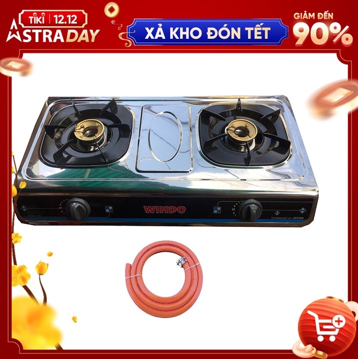 ✨Bếp gas đôi mặt Inox Windo +Tặng dây dẩn gas 3 lớp - Hàng Chính Hãng