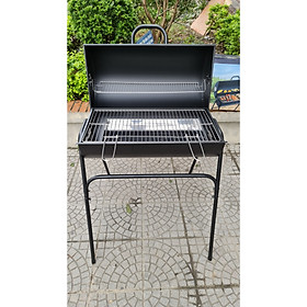 Bếp nướng than hoa sân vườn có nắp đậy gồm các bộ phận: + chân bếp + vỉ nướng: rộng 60x29cm + Khay than + Nắp đậy. + Giá Đỡ thực phẩm