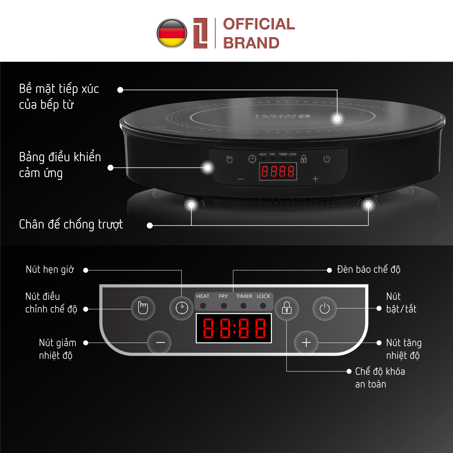 Bếp từ đơn LEBENLANG LBII5505S mặt kính chịu lực, có chức năng hẹn giờ, cài đặt thời gian nấu, công suất 2000W - hàng chính hãng THÔNG SỐ KỸ THUẬT - Model: LBII5505S - Màu
