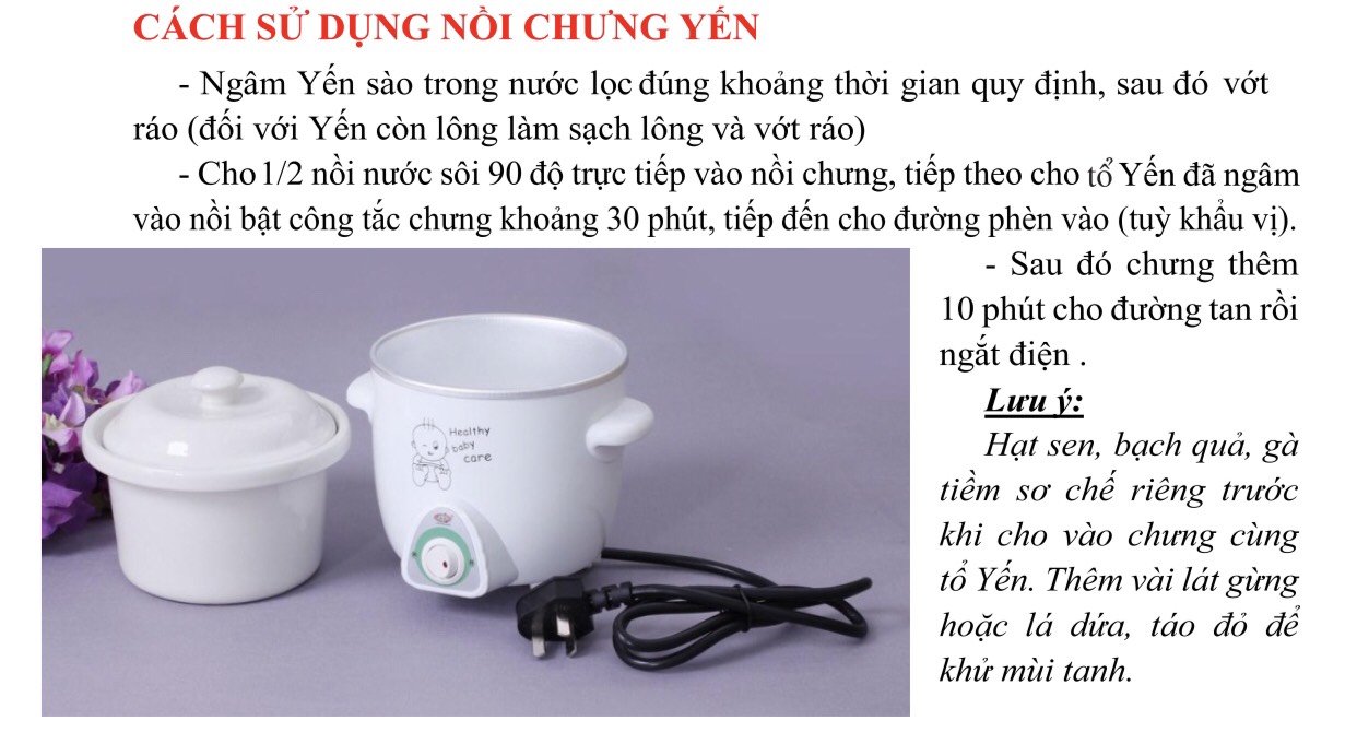 THÔNG TIN SẢN PHẨMTừ lâu, tổ yến thiên nhiên đã được biết tới là thực phẩm thượng hạng giúp chăm sóc sức khỏe và sắc đẹp toàn diện. Tuy nhiên, chế biến yến sào sai cách cũng có thể làm mất đi giá tr...