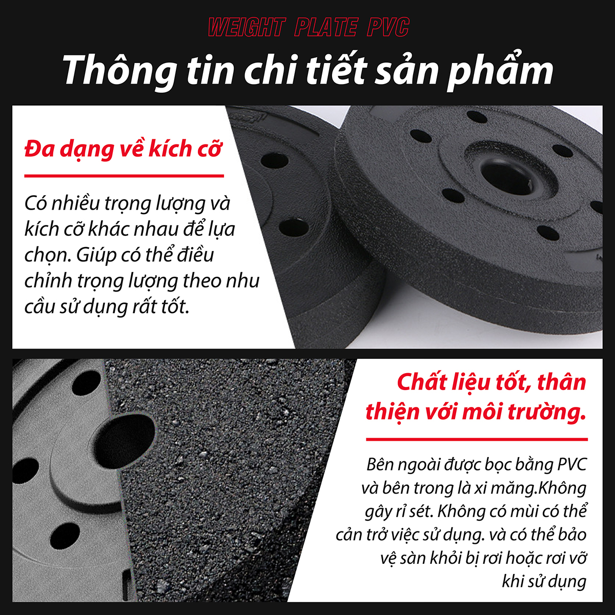 - Tạ có các mức khối lượng từ 1.25kg-15kg cho bạn dễ lựa chọn theo nhu cầu.