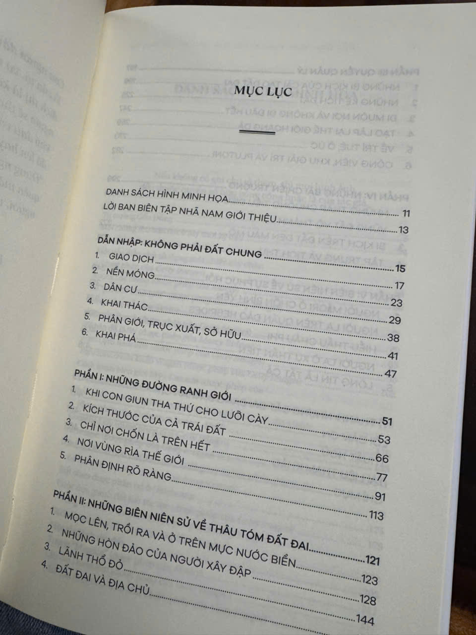 Chúng ta sẽ cùng tác giả đi qua nhiều thập niên kiến tạo vùng đất Flevoland – một tỉnh của Hà Lan nằm hoàn toàn ở trên vùng đất lấn biển, ta cũng sẽ chứng kiến hệ lụy từ công cuộc rào đất đẫm máu ở nông thôn Anh hồi thế kỷ 18, đồng thời cũng hiểu rõ hơn các cuộc tranh chấp dai dẳng về quyền sở hữu đất đai giữa thổ dân với hậu duệ dân định cư ở Mỹ, Úc và New Zealand, cũng như cuộc chiến giành đất của người Do Thái và người Palestine ở khu vực Trung Đông...