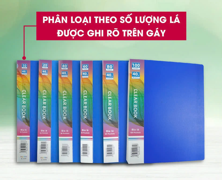 - Bìa 20 lá thích hợp cho gia đình, văn phòng: lưu trữ các loại giấy tờ nhà đất, giấy bảo hiểm, hóa đơn, giấy bảo hành…