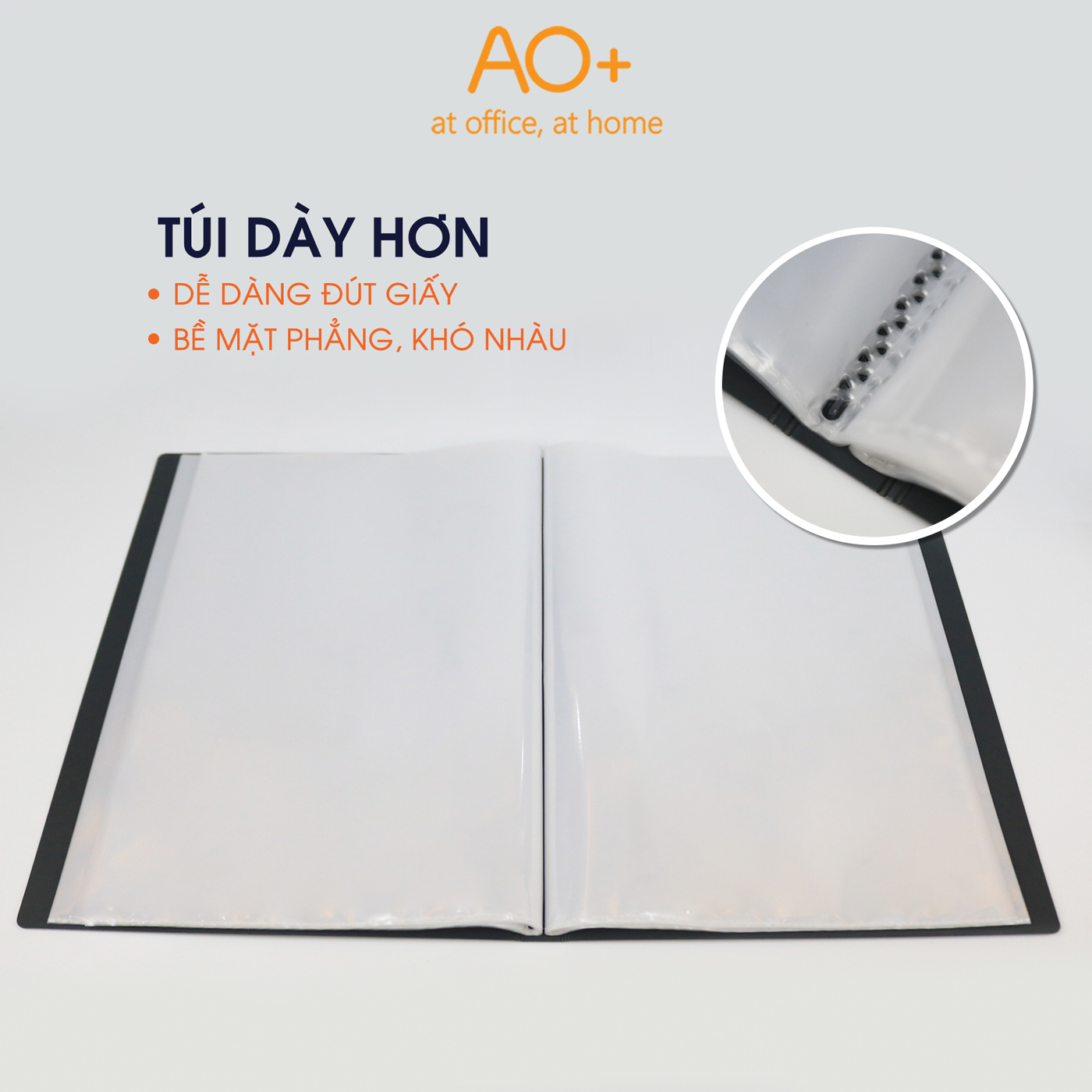Thương hiệu: AO+ Xuất xứ : Việt Nam ĐẶC TÍNH NỔI BẬT: - Gáy đặc biệt, tự co dãn, mềm mại, thích ứng với mọi loại tài liệu - Túi đựng tài liệu trong suốt,