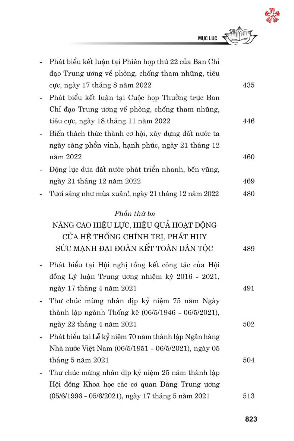 Cuốn sách thể hiện tư tưởng xuyên suốt, nhất quán của người đứng đầu Đảng ta về công tác đấu tranh phòng, chống tham nhũng, tiêu cực, xây dựng, chỉnh đốn Đảng, rèn luyện đạo