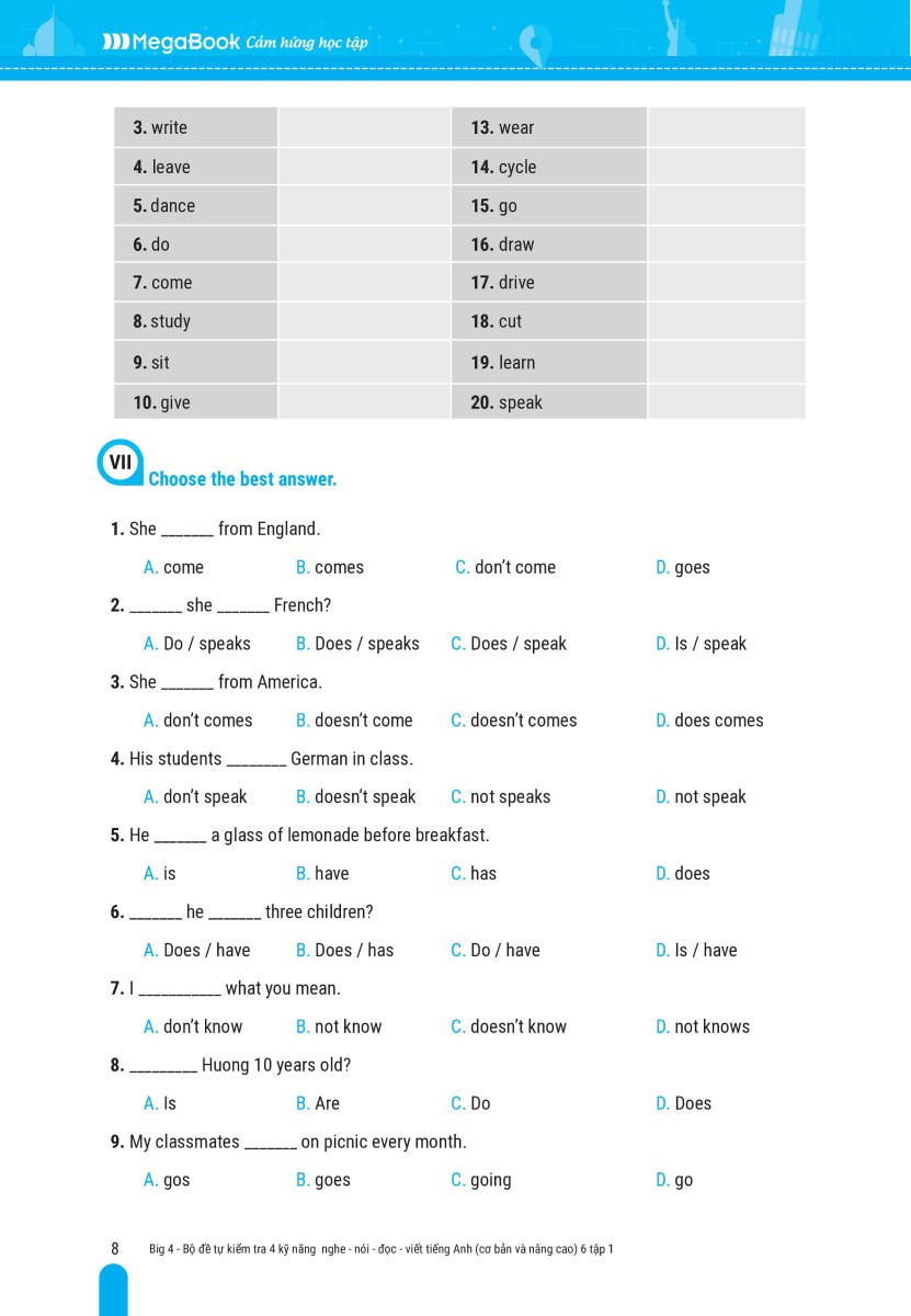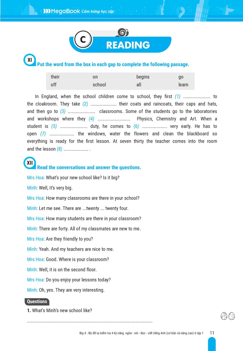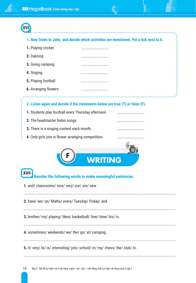 ✨Big 4 Bộ Đề Tự Kiểm Tra 4 Kỹ Năng Nghe - Nói - Đọc - Viết Tiếng Anh (Cơ Bản Và Nâng Cao) 6 Tập 1 (Global) _Mega