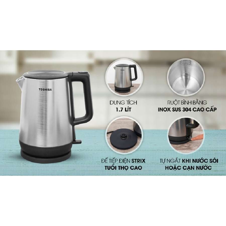 Bình Đun Siêu Tốc Toshiba KT-17DR1NV được làm bằng thép không gỉ, có độ bền cao, chống bám cặn. Bình có kiểu dáng đơn giản, nhỏ gọn, không chiếm nhiều diện tích, góp phần tô điểm thêm cho không gian căn bếp nhà bạn.