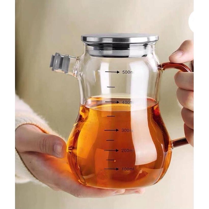 Bình Thủy Tinh Rót Dầu Ăn/Nước Mắm Có Vòi & Phễu Tích Hợp – Dung Tích 500ml – Chai Đựng Gia Vị Thông Minh, Chịu Nhiệt, Có Vạch Chia Thông Tin Chung - Dung tích: