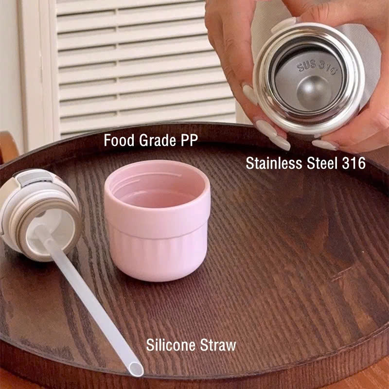 • Phong cách hoạt hình dễ thương: Bình giữ nhiệt có nhiều màu sắc trẻ trung, bao gồm trắng sữa, nâu đất, hồng cam và xanh dương, cùng thiết kế hoạt hình dễ thương, phù hợp với nhiều lứa tuổi và phong cách.