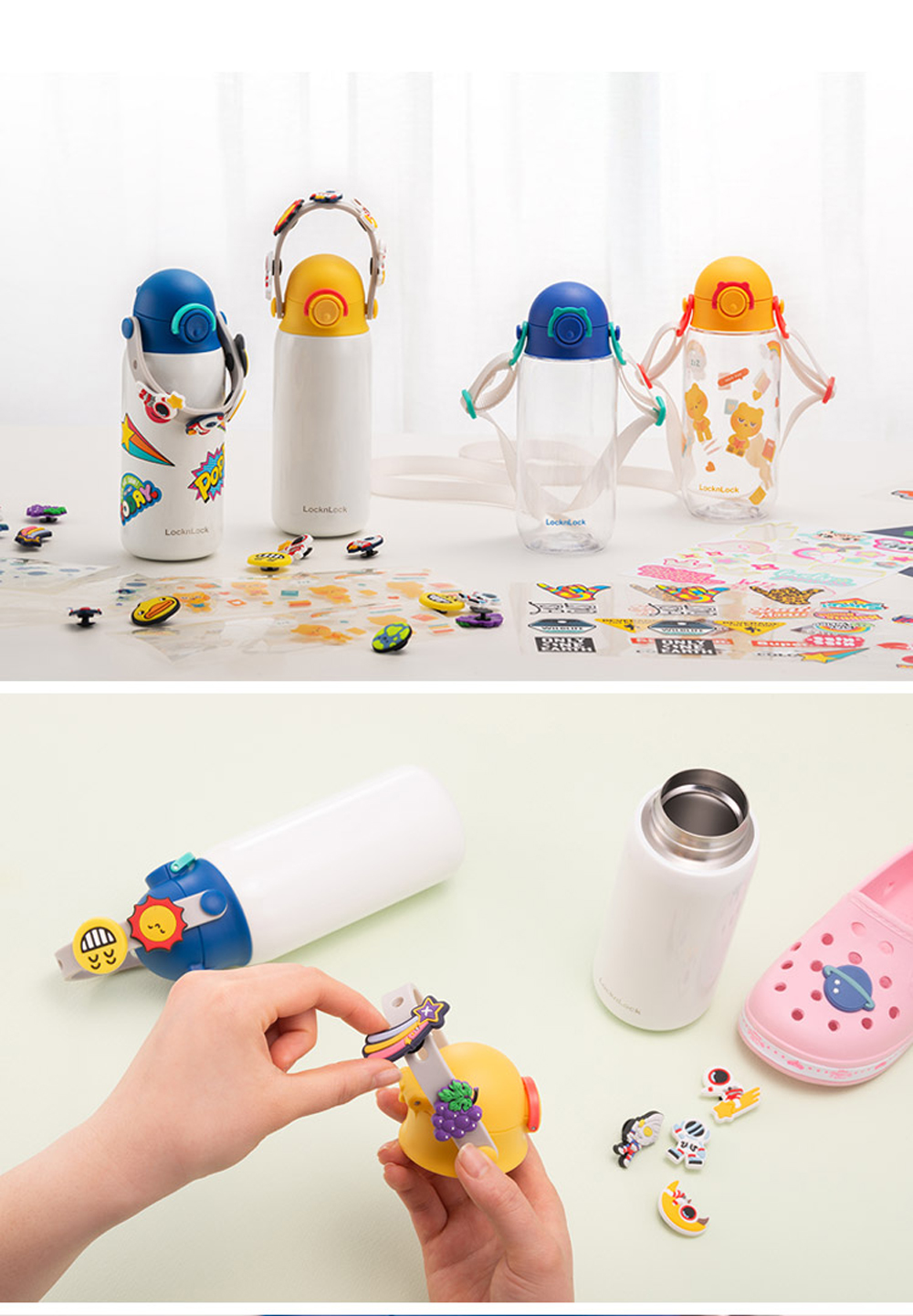 Bình giữ nhiệt có quai xách và trang trí ngộ nghĩnh 350ml LocknLock LHC3283 #LHC3283YEL #LHC3283BLU