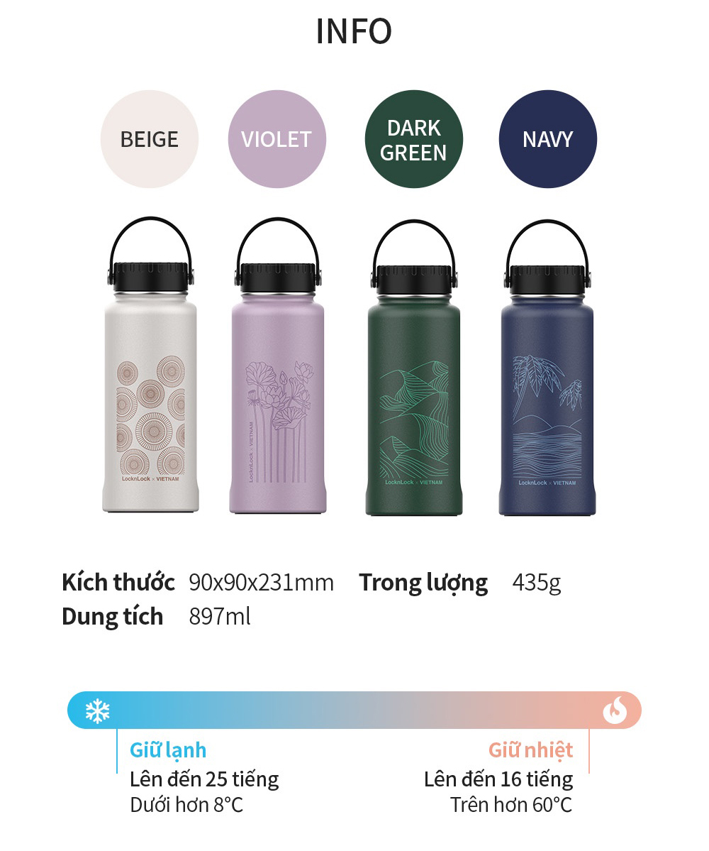 Bình giữ nhiệt LocknLock Balance grip tumbler LHC4397 dung tích 900ml / LHC4398 dung tích 1.2L có quai - 3 màu Xuất xứ: Trung Quốc Cấu tạo: Thân: thép không gỉ SUS304; Nắp: Tritan,