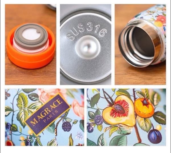 Bình giữ nhiệt Magrace Paris hoạ tiết vườn hoa xinh đẹp giữ được lạnh 12 tiếng, giữ nóng 8 tiếng xinh xỉu cho các chị em uống nước ở nhà, ở văn phòng giữ nhiệt siêu tốt. Không bị mồ hôi chảy nước ra bàn hợp dùng ở văn phòng, gia đình hay đi xe ô tô nha.