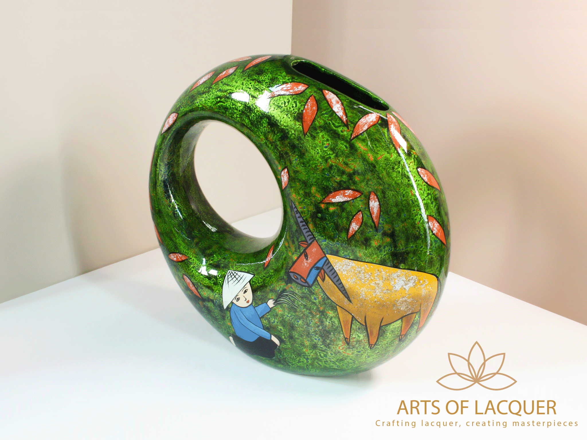 Bình Hoa Sơn Mài "Thuận Hoà Làng Quê" là sự lựa chọn hoàn hảo cho những ai yêu thích nghệ thuật thủ công và phong cảnh làng quê Việt Nam. Hãy thêm vào bộ sưu tập của bạn một tác phẩm nghệ thuật đầy ý nghĩa từ Arts of Lacquer.