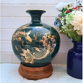 Bình hút tài lộc phong thủy Song ngư vọng nguyệt vẽ vàng 24k gốm sứ Bát Tràng cao cấp (H28xD25cm)    Cá chép, từ lâu đã trở thành con vật linh thiêng của nhân dân