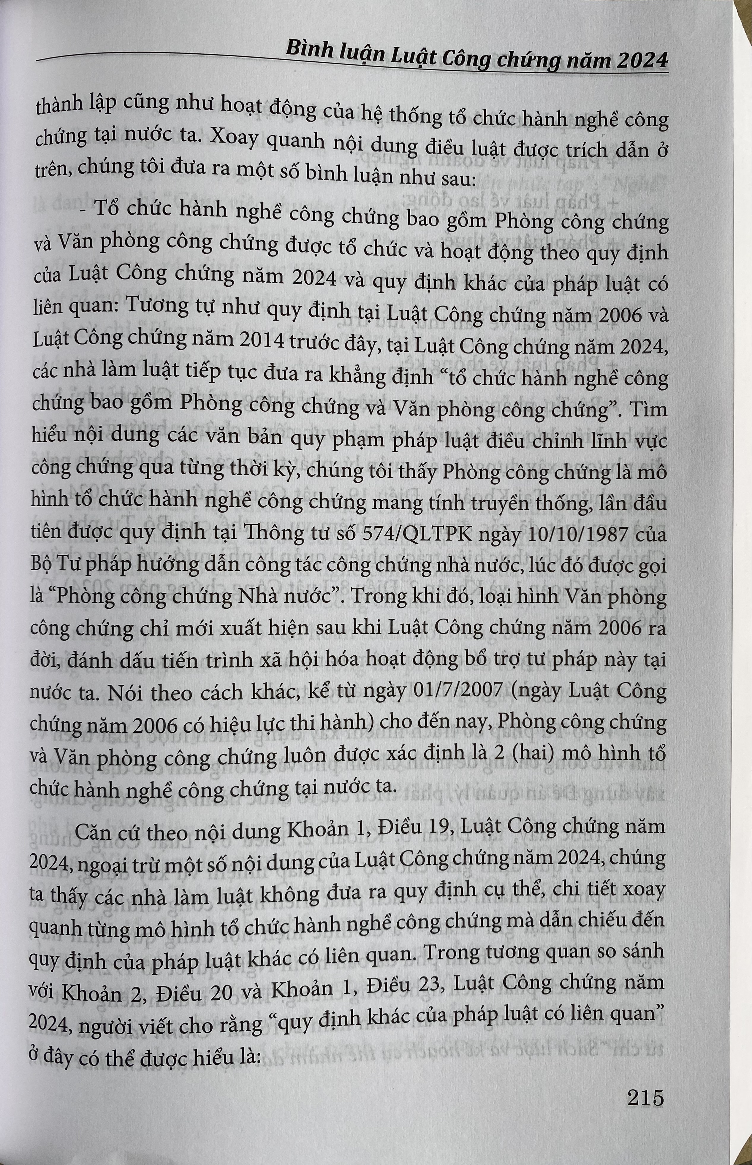 Nhằm cung cấp cho độc giả một góc nhìn toàn cảnh các quy đ. ịnh của Luật Công chứng năm 2024 trước những thay đổi nhanh chóng của thực tiễn cuộc sống cũng như việc sửa đổi, bổ sung rất nhiều đạo luật có liên quan trực tiếp hoặc gián tiếp đến hoạt động này, Nhà xuất bản Tư pháp xuất bản cuốn "Bình luận Luật Công chứng năm 2024".
