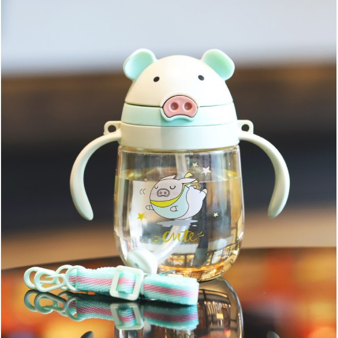 ✨Bình Nước Có Ống Hút Cho Bé Tập Uống Có Van Chống Sặc Hình Mũi Lợn Cao Cấp 250-350ml Bằng Nhựa PP Chịu Nhiệt Tốt Có Tay Cầm Tiện Lợi - Hàng Loại 1 - Chính Hãng MINIIN