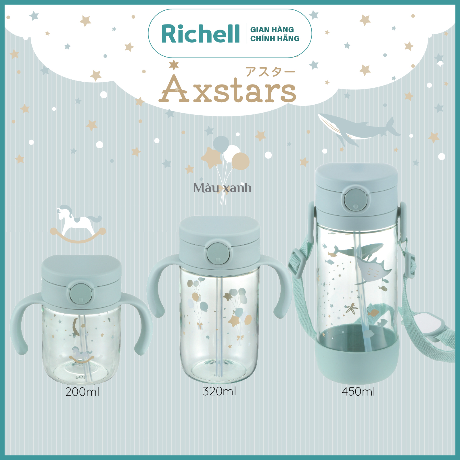 ✨Bình ống hút AXSTARS Richell Nhật Bản 450ml chống sặc cho bé từ 8 tháng | Baby