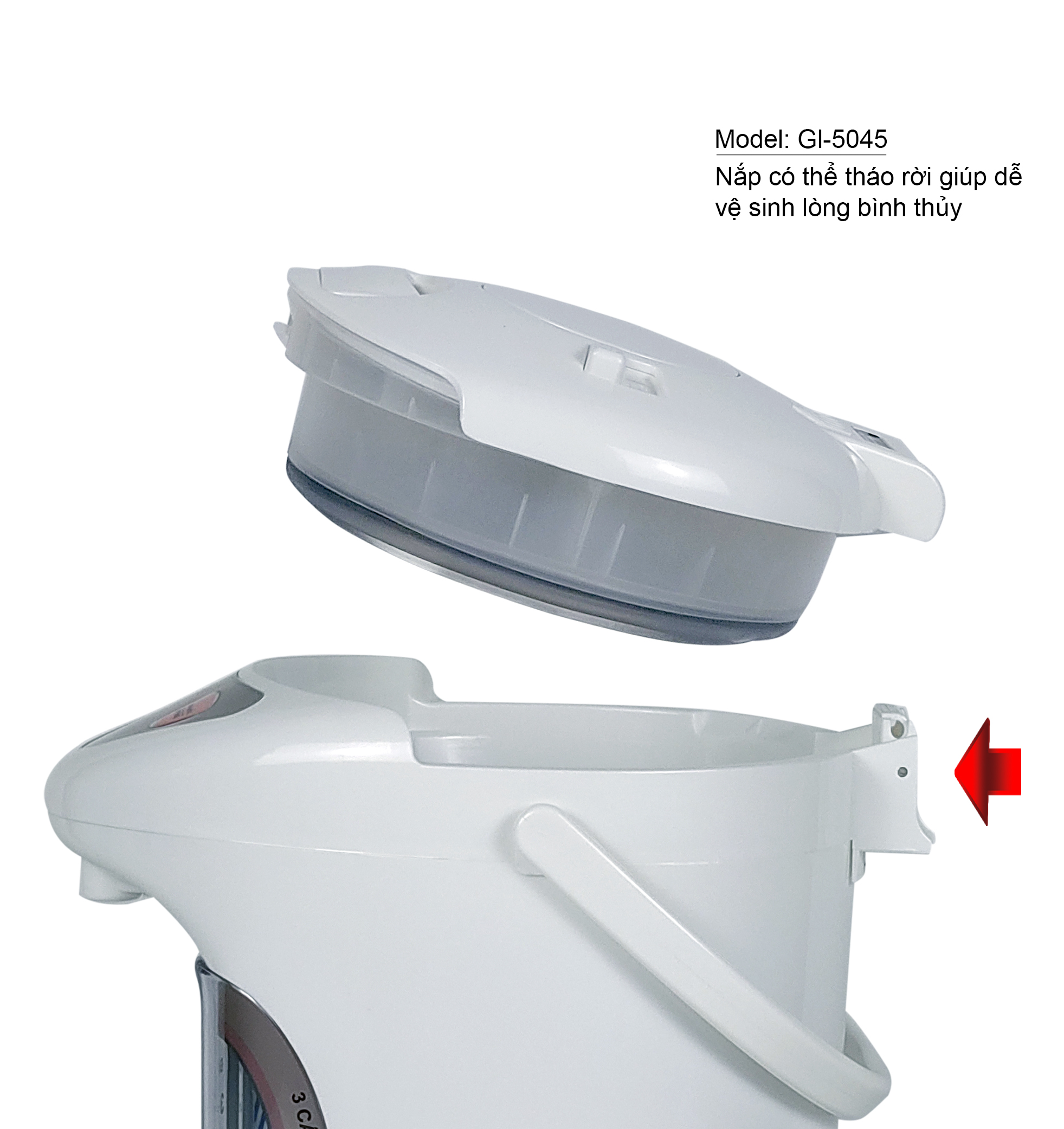 - Bình đun nước dùng điện Gali GL-5045 kết hợp cả 3 chức năng: đun sôi lại, giữ nóng, bạn không cần phải mua bình đun nước riêng, bình thủy riêng và bình chứa nước nguội riêng, giúp tiết kiệm chi phí cho gia đình bạn.