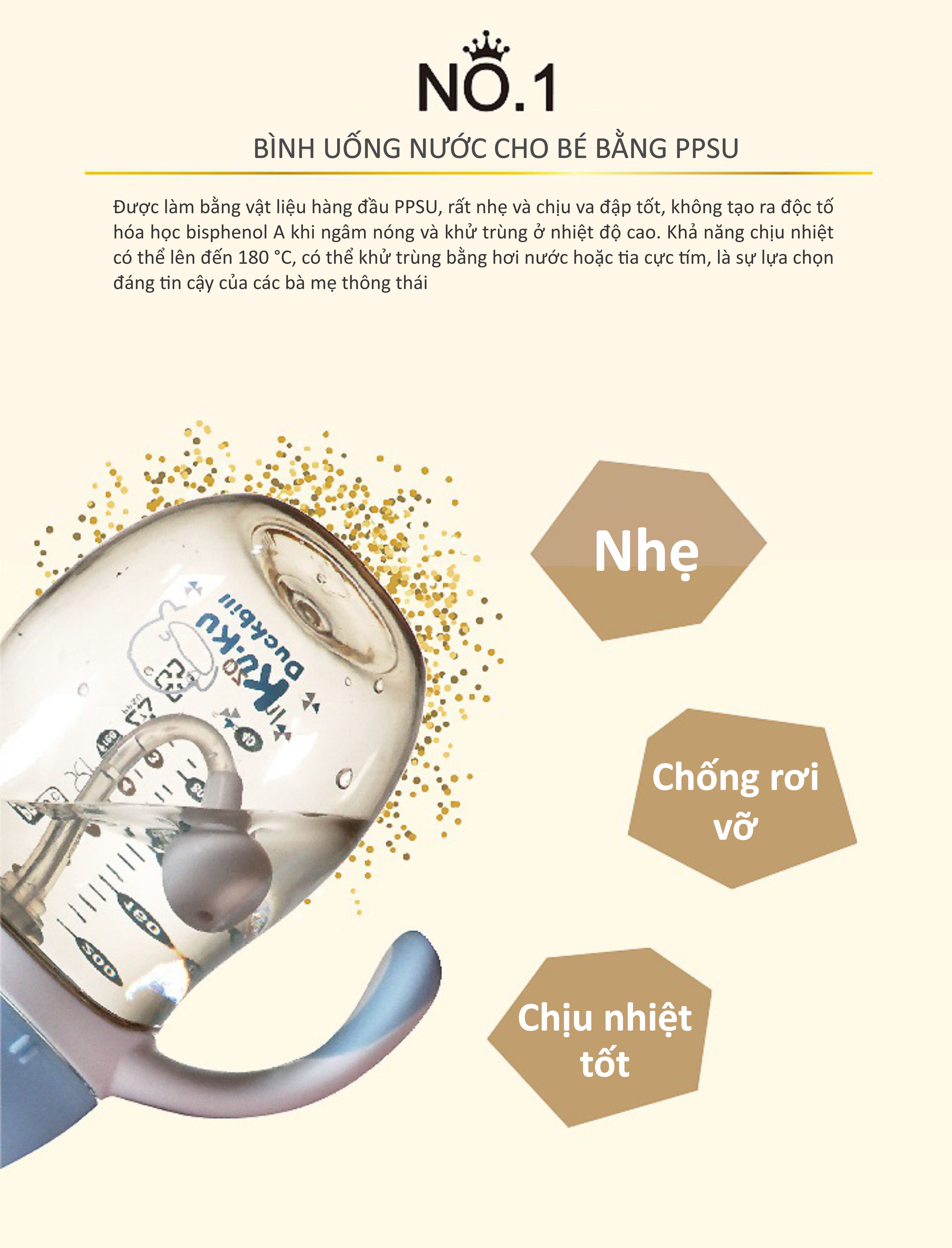 Đảm bảo vệ sinh: Chất liệu PPSU không bám bẩn, dễ dàng vệ sinh, giúp bảo vệ sức khỏe của bé.