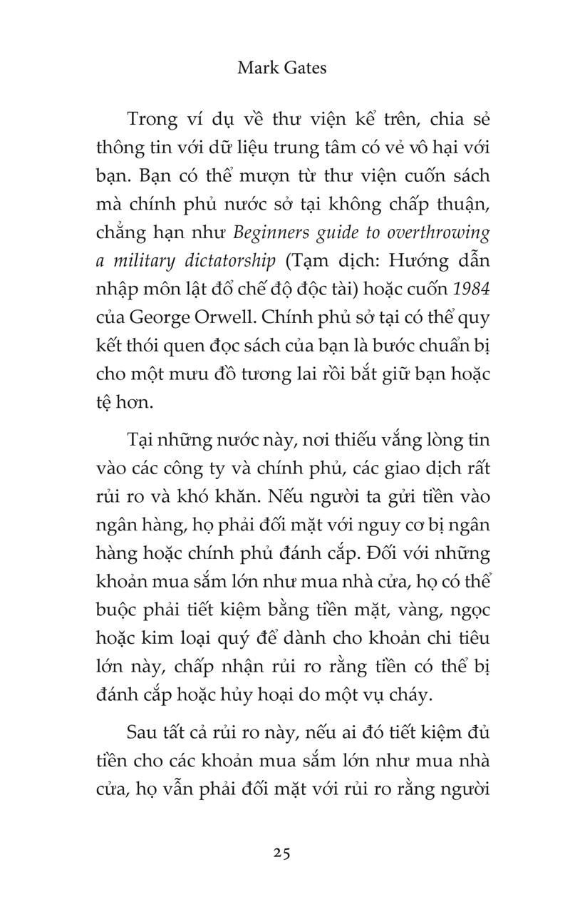 Thực chất, những bài viết cung cấp thông tin về Blockchain và tiền điện tử không thiếu trên các website hay mạng xã hội, nhưng lại chưa đủ tính bao quát và còn khó tiếp thu. Đó là lý do cuốn sách “BLOCKCHAIN: Bản chất của Blockchain, Bitcoin, tiền điện tử, hợp đồng thông minh và tương lai của tiền tệ” của Mark Gates ra đời. Gates cung cấp một bản tóm lược dễ hiểu nhất, cung cấp nền tảng thiết yếu cho những người mới bắt đầu và cả những ai muốn nghiên cứu sâu hơn về công nghệ Blockchain và tiền ảo. Đọc cuốn sách này, bạn sẽ hiểu được Blockchain dưới nhiều khía cạnh, trong đó không chỉ có những lời ngợi khen mà còn không thiếu các chỉ trích, bình luận trái chiều.
