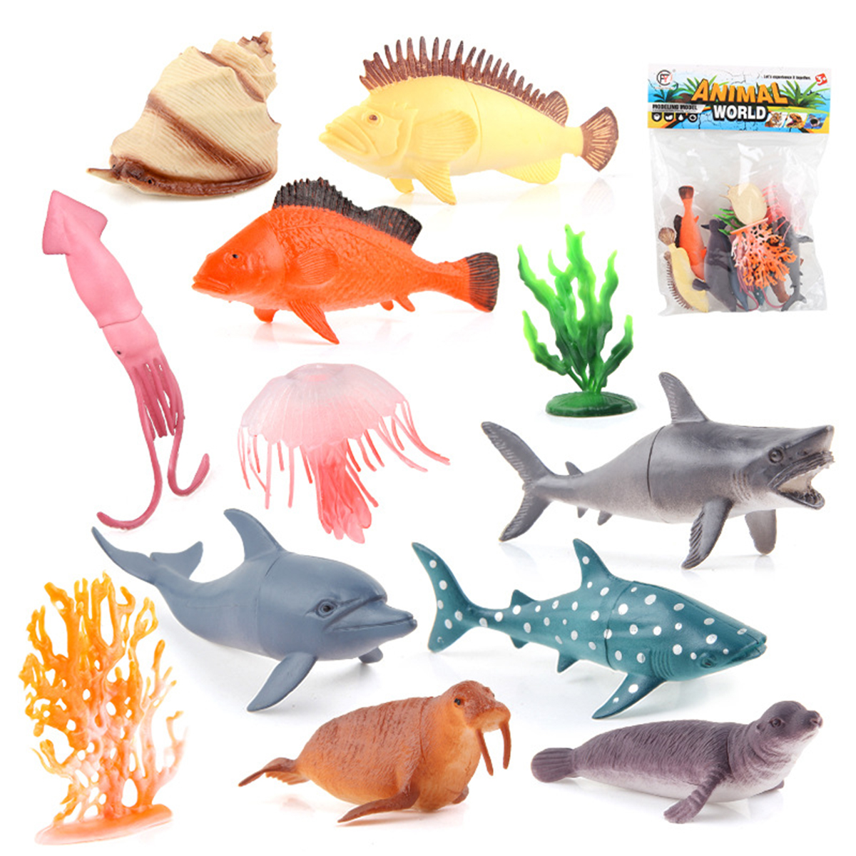✨Bộ 12 đồ chơi Cá Biển Ốc Mực Hải Cẩu Cá Mập Cá Heo Ocean World Fish nhựa dẻo 12 chi tiết cho bé mang đi biển, đi tắm hồ bơi