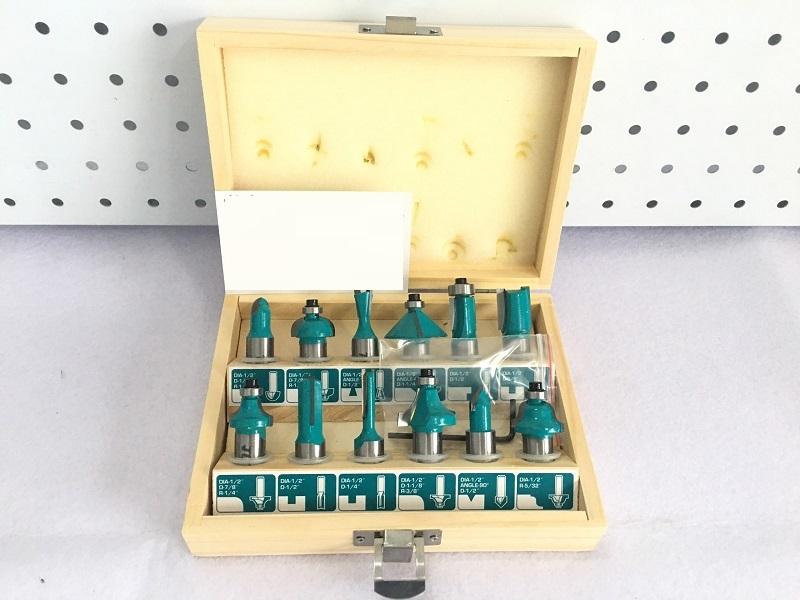 -Gồm 3 mũi thẳng :6mm,12mm,16mm 1pcs 1/2" 90°V-groove bit, 1pcs 1/2" Dovetail bit 1pcs 32mm 45°Chamfer bit , 1pcs 1/2" flush trim bits