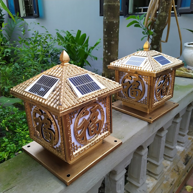 mẫu đèn trụ cổng năng lượng mặt trời chữ phúc 300x300 màu vàng p1