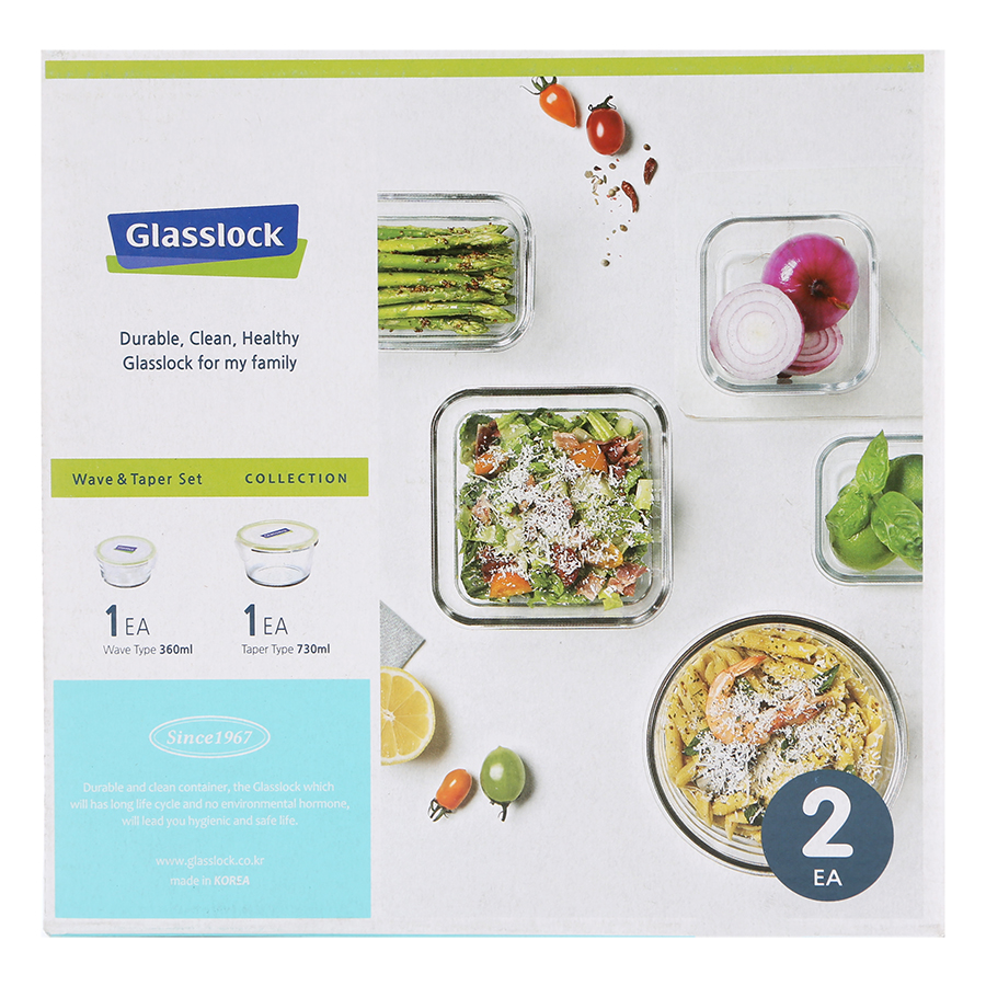 _x000D_ - Bộ 2 Hộp Thủy Tinh Hình Tròn Glasslock GL1471 (360 + 730 ml) được sản xuất hoàn toàn từ những nguyên liệu tự nhiên. _x000D_ - Sản phẩm có thể chịu được các