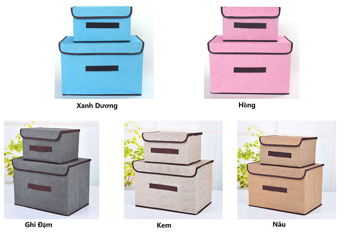 Combo 2 Hộp Đựng Đồ Đa Năng - Màu Ngẫu nhiên - THÔNG TIN SẢN PHẨM: Chất liệu: Vải không dệt, khung giấy cứng Màu sắc: Nâu, hồng, kem, ghi, rêu (giao ngẫu nhiên) Kích