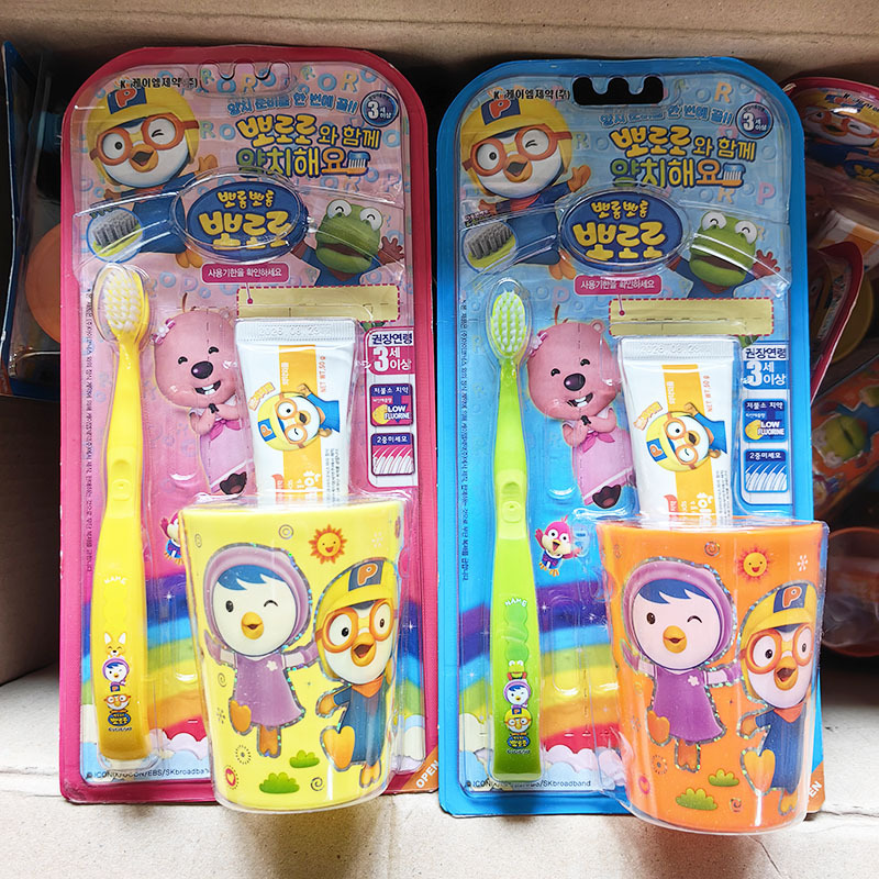 ✨Bộ 3 bàn chải đánh răng + kem đánh răng + cốc Pororo Hàn Quốc