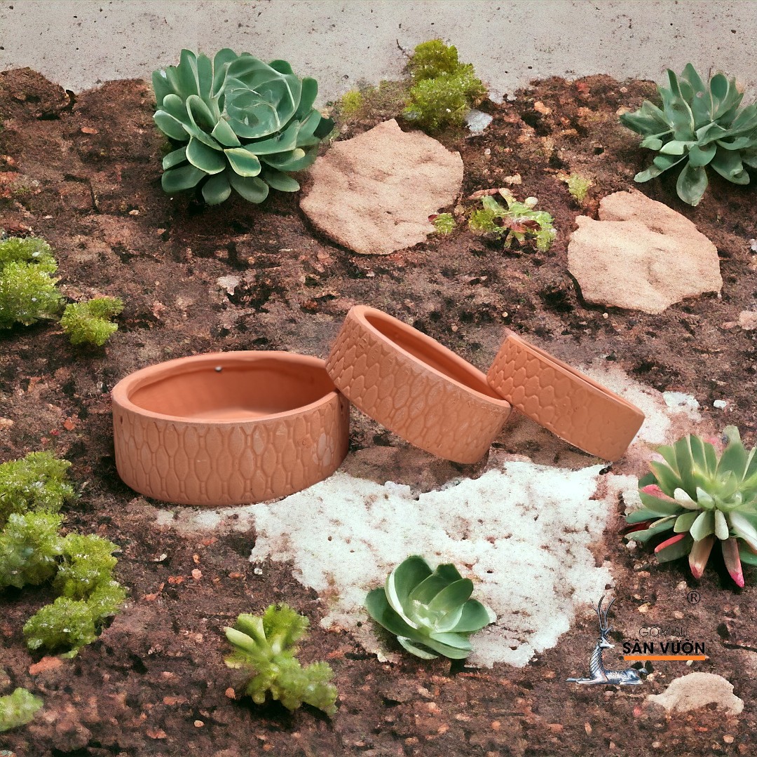 ✨Bộ 3 Chậu Gốm Đất Nung Sọc Caro Và Góc Cây
