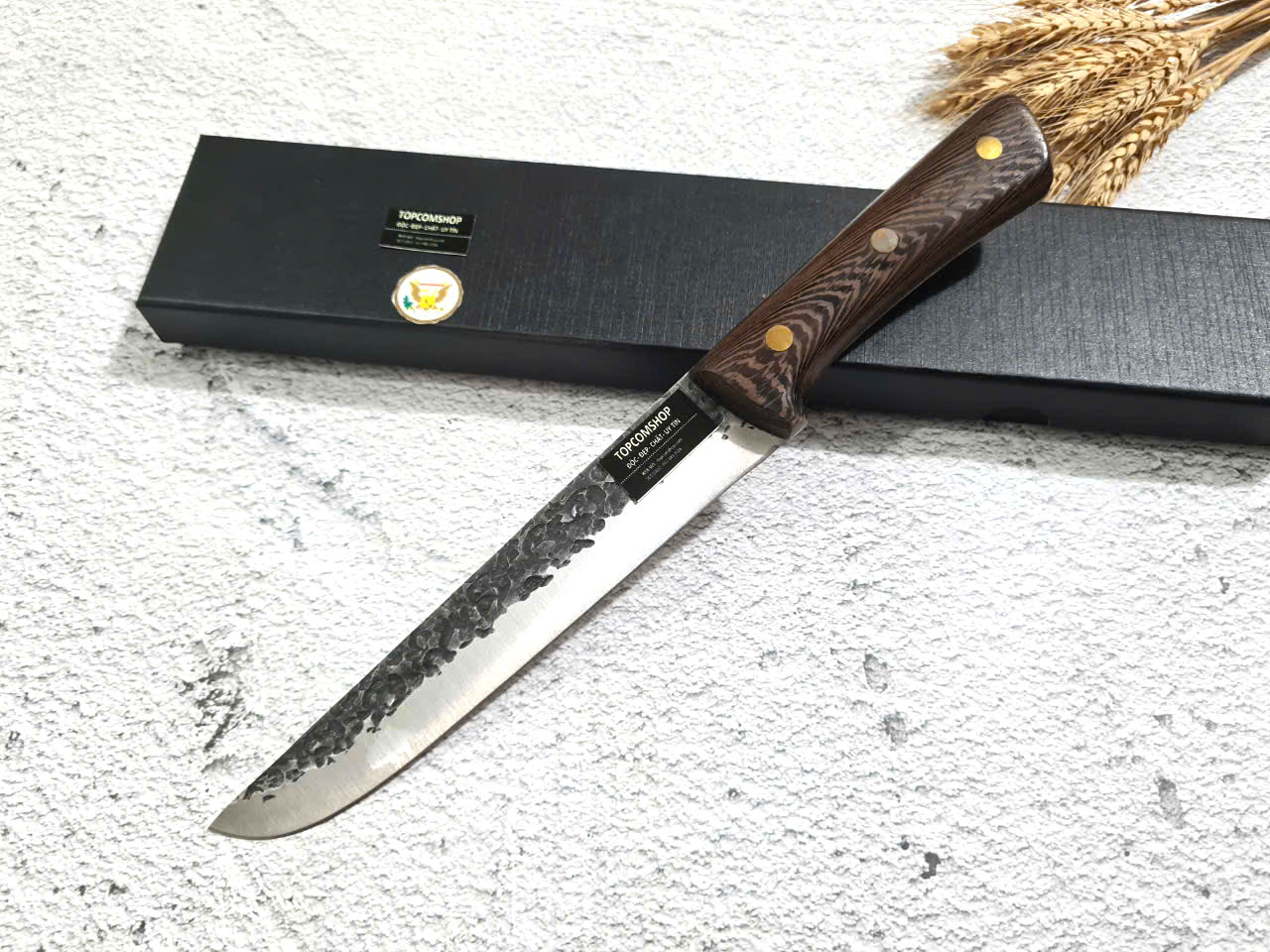 • Chất liệu: Thép Nhật 420J2, độ cứng 53HRC – siêu bền, chống gỉ • Lưỡi dao: Dày 2.5mm, sắc bén, hoàn thiện bằng đá mài nước • Tay cầm: Gỗ Pakka sang trọng, chống