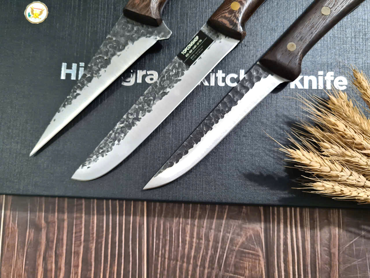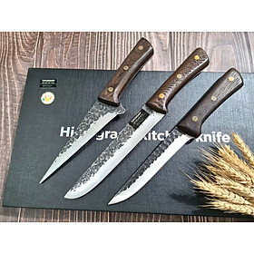 Bộ 3 Dao, Bộ Dao Nhật Bản, Bộ Dao Lưỡi Thép, Bộ Dao Nhà Bếp - Có Chuôi Có Bao Da