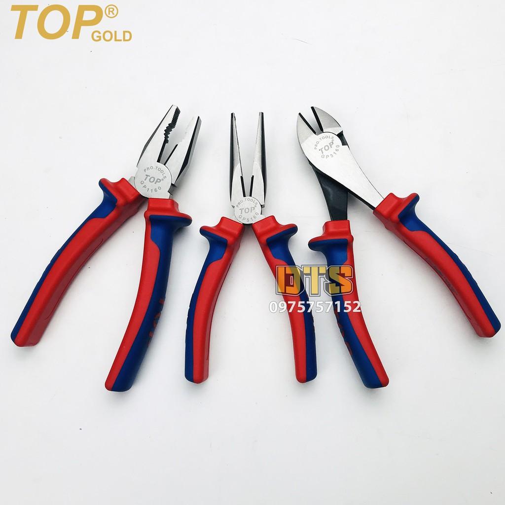 ✨Bộ 3 kìm điện - cắt - nhọn trợ lực chuyên nghiệp TOP GOLD 160mm, thép Hi-Cr cao cấp, thiết kế cộng lực tiết kiệm 50% lực