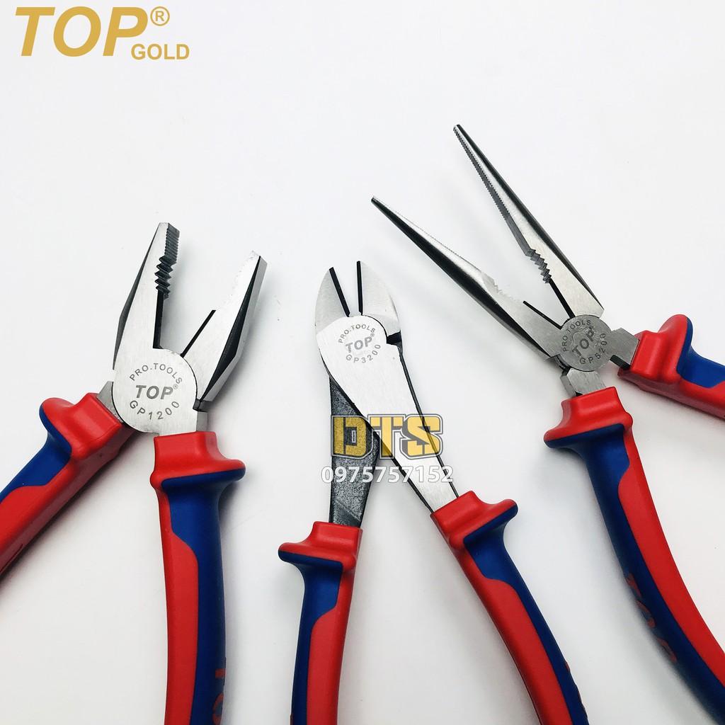 Bộ 3 kìm điện - cắt - nhọn trợ lực TOP GOLD 200mm, thép Hi-Cr cao cấp, tiết kiệm 50% lực bấm
