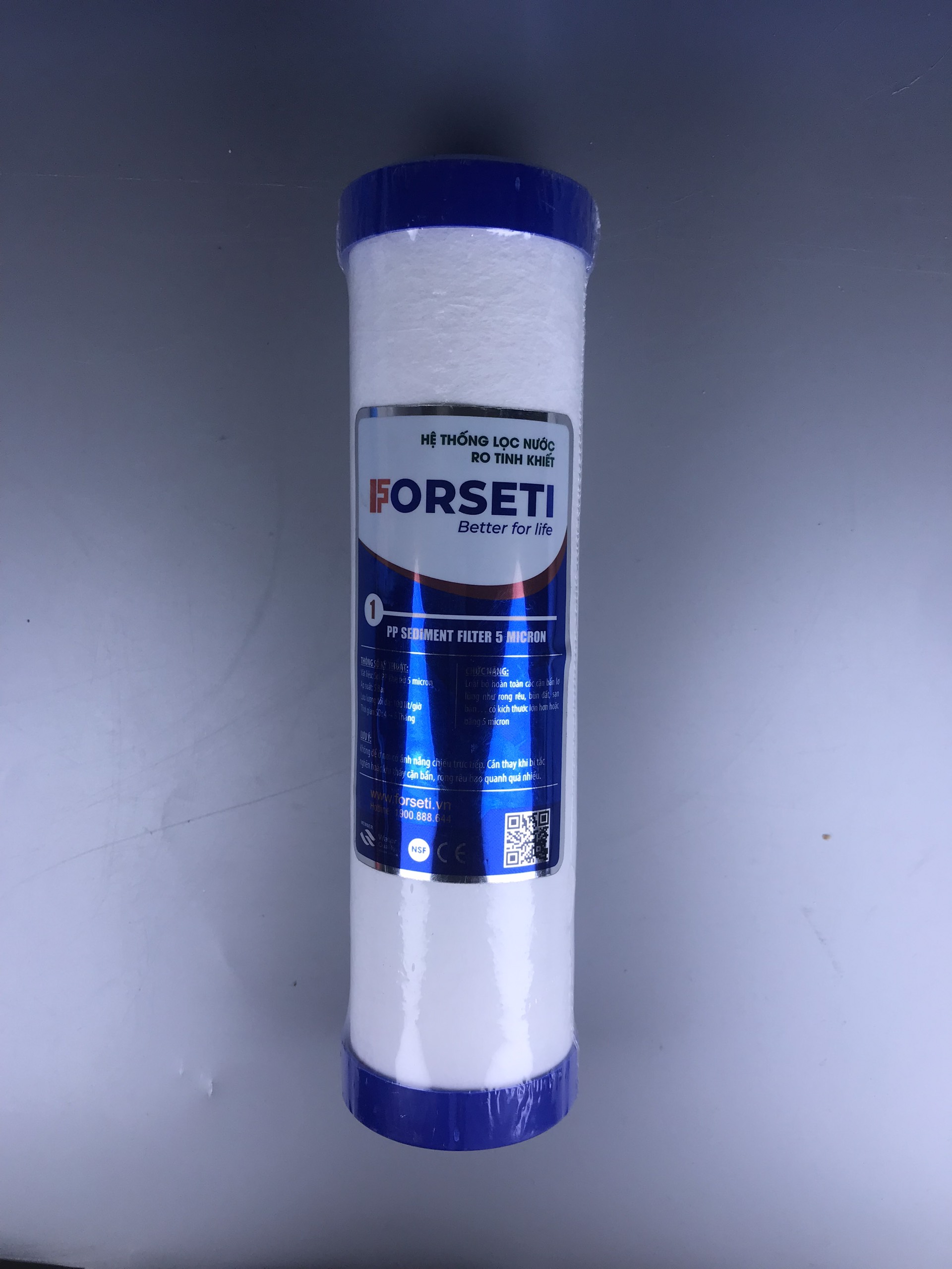 - Lõi số 1 FORSETI Cấu tạo: Lõi được cấu tạo bởi sợi bông xốp của nhựa polyprolen, sau đó được nén chặt lại Chức năng: Lọc các tạp chất hữu cơ, rỉ xét, bùn đất hay các chất lơ lửng trong nước có kích thước lớn hơn 5 micron Thời gian thay thế: 3-6 tháng/lần