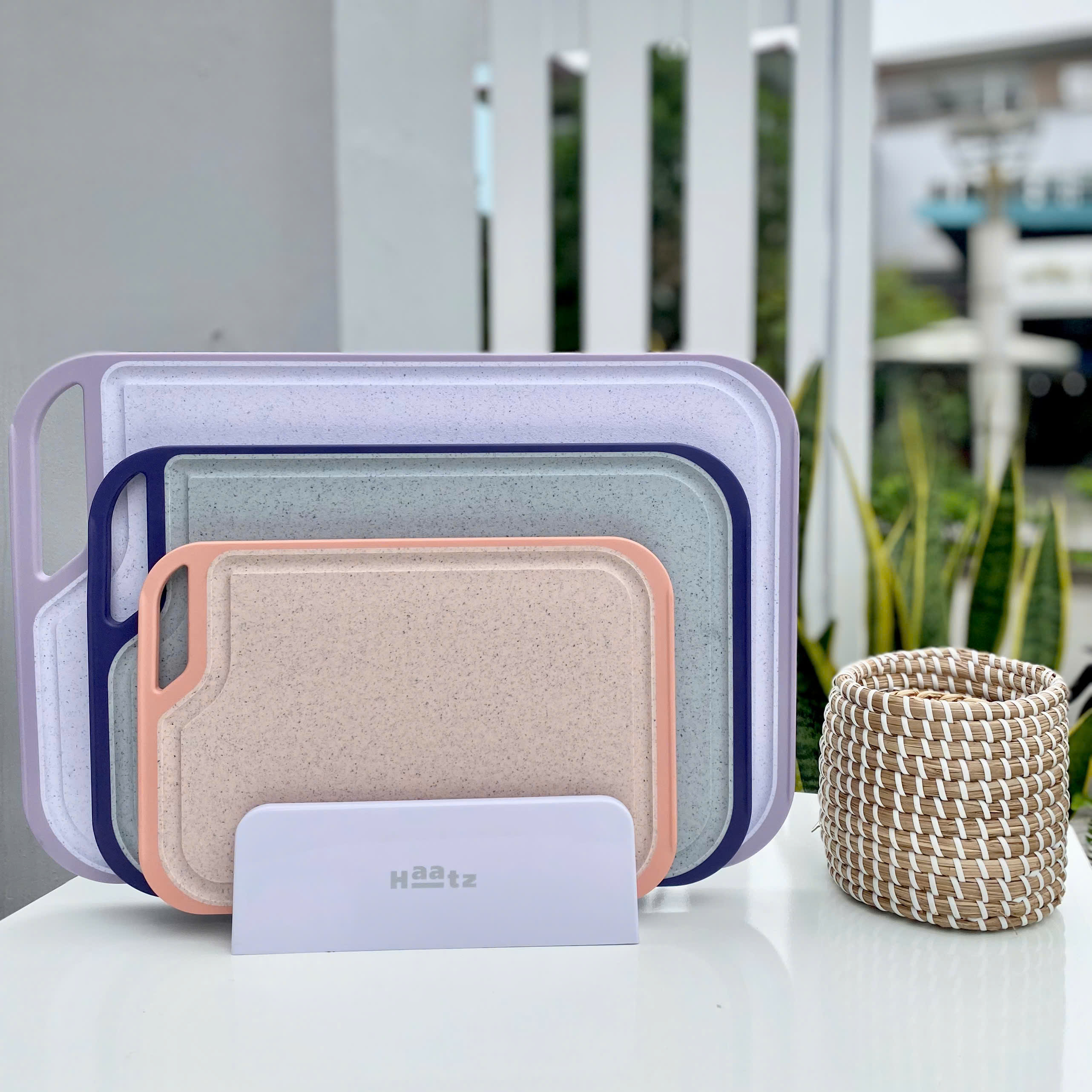 Bộ 3 thớt nhựa kháng khuẩn đa năng Haatz Hàn Quốc CIM296 kèm giá đỡ - Zalo ngay 0986588655