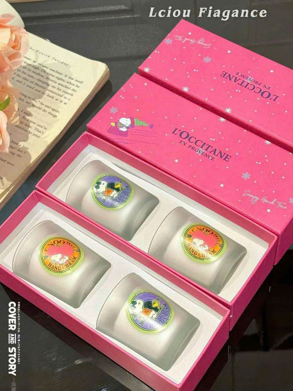 Thiết kế cao cấp: Hũ thủy tinh mờ sang trọng, hộp quà tặng màu hồng nổi bật, họa tiết Snoopy đáng yêu.