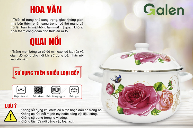 - Nồi men có thể được sử dụng ngay trên bếp ga, bếp hồng ngoại và bếp từ