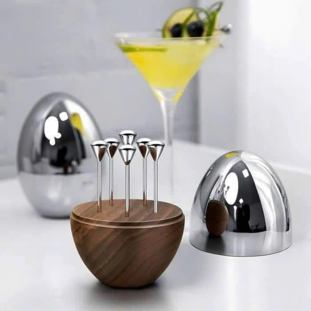 Mua tại TiktokBộ 6 dĩa hoa quả Modern siêu độc lạ với giá đỡ hình quả trứng bằng gỗ và mặt trên là thép không gỉ sáng bóng cực xịn sò ạaa Mang đến sự sang trọng, thanh lịch tinh tế cho các bữa tiệc tại gia cùng gia đình Kích thước mỗi cây xiên 8cm phù hợp để trang trí cooktail, xiên hoa quả, cherry, oliu…
