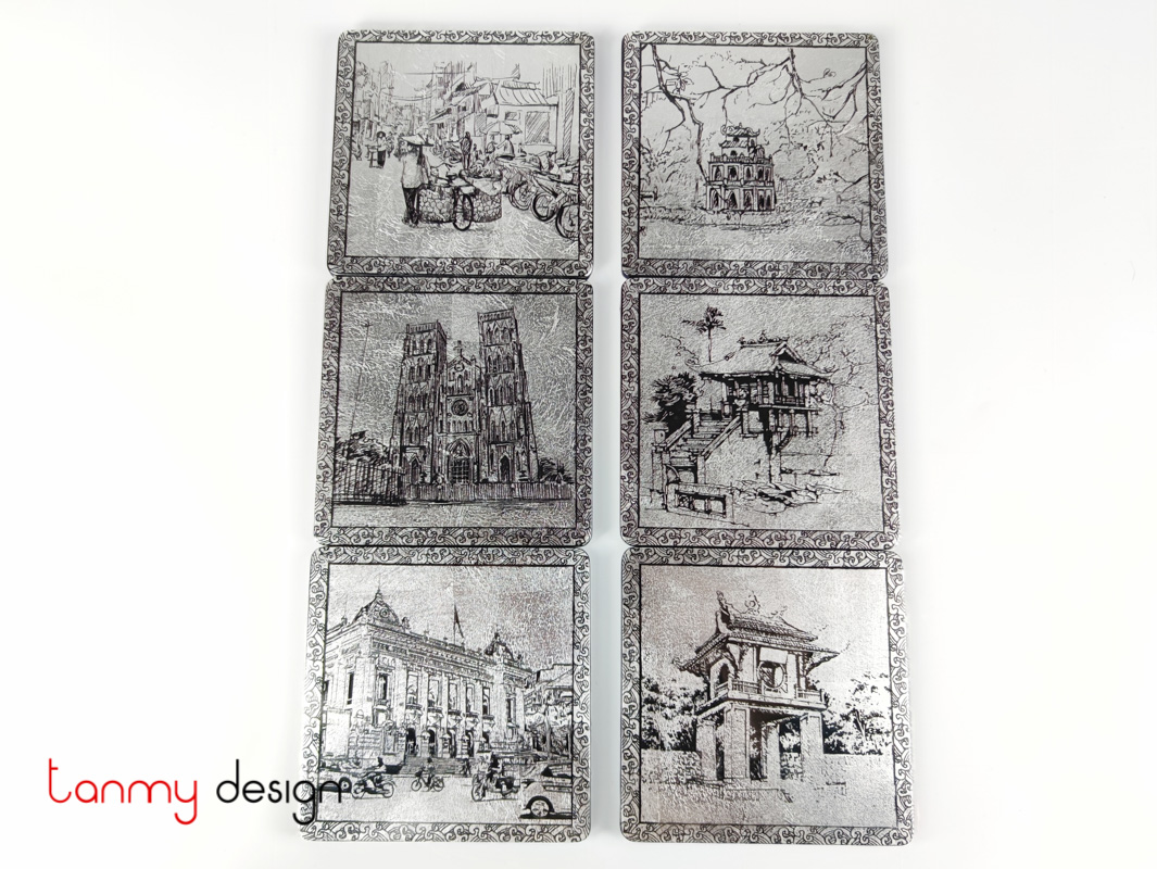 ✨BỘ 6 LÓT CỐC SƠN MÀI HÌNH PHỐ CỔ HÀ NỘI.