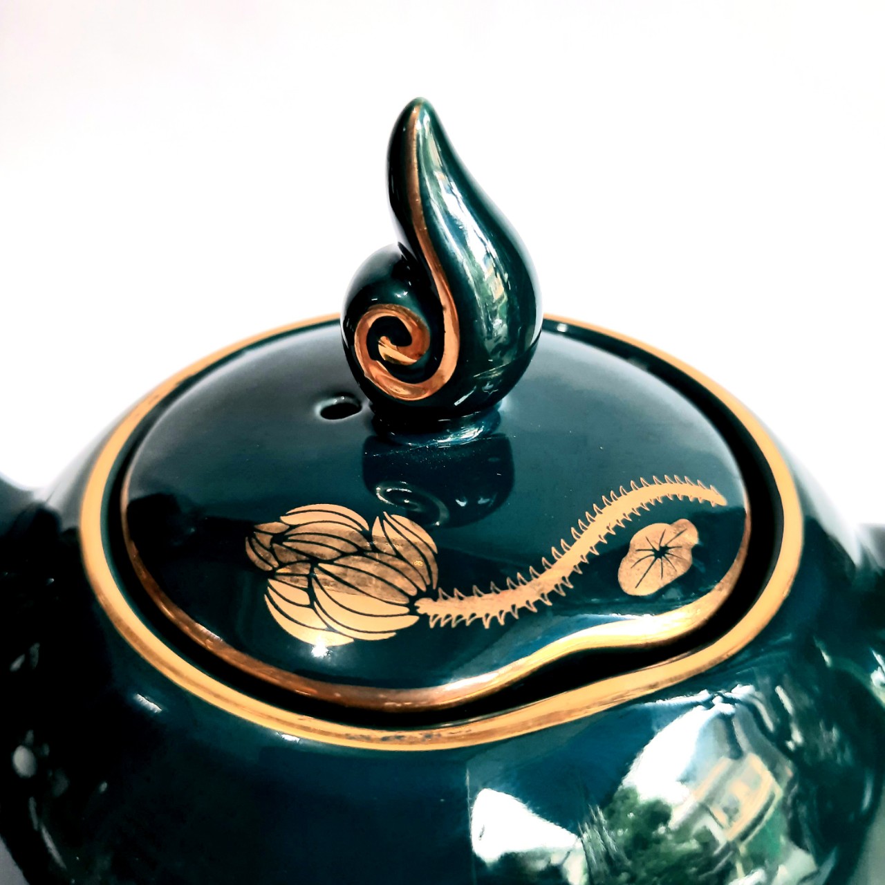✨Bộ ấm chén Bát Tràng cao cấp phú quý Mallard màu xanh Arctic họa tiết hoa sen vẽ vàng 24k